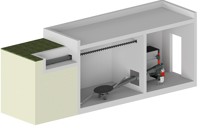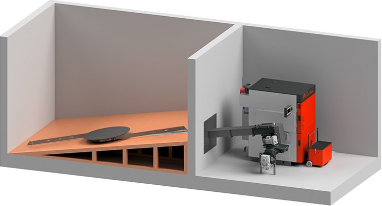Wood chip storage can be integrated anywhere. prerequisite for this is enough space and the possibility of a wall or floor duct. Our wood chip heaters are particularly suitable for larger buildings or combined heat and power networks.