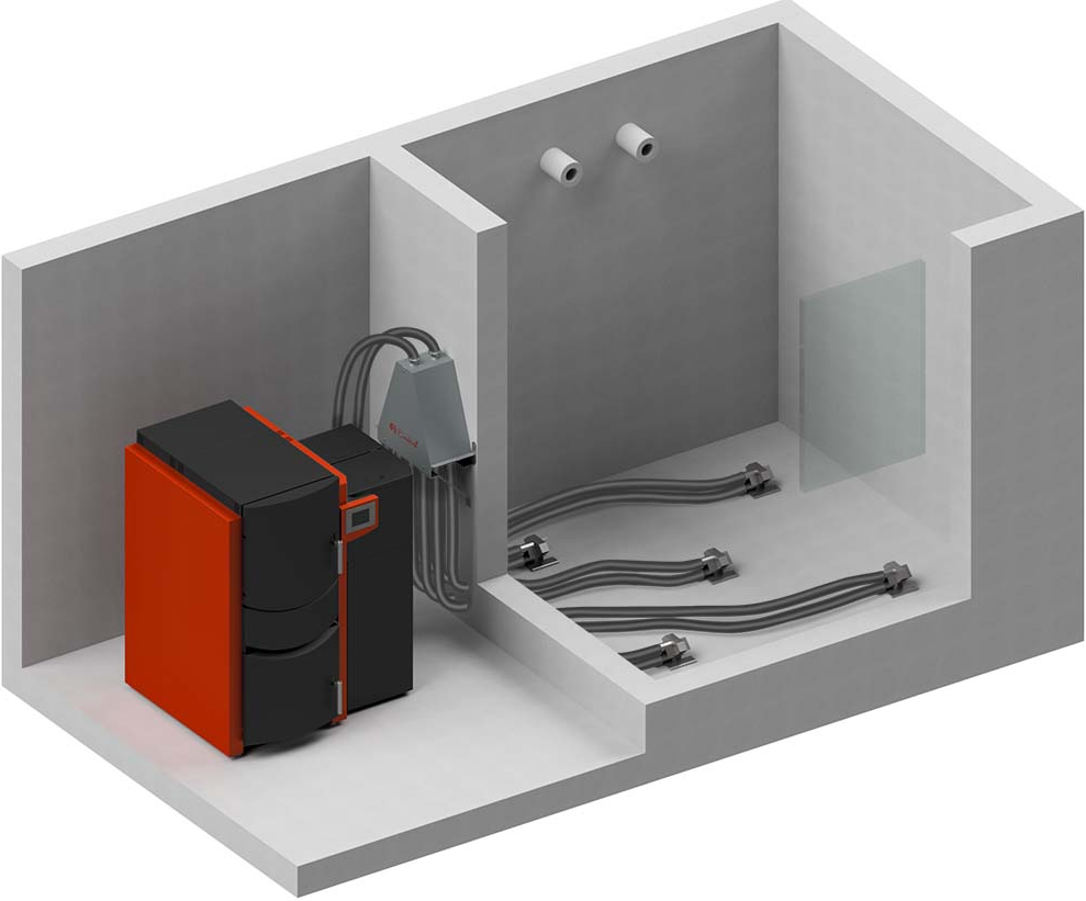 Les décharges de pellets sont flexibles et adaptables à de nombreuses circonstances. Même si aucun espace de stockage supplémentaire n'est disponible, un silo à sacs peut être mis en place ou un réservoir installé à l'extérieur du bâtiment.