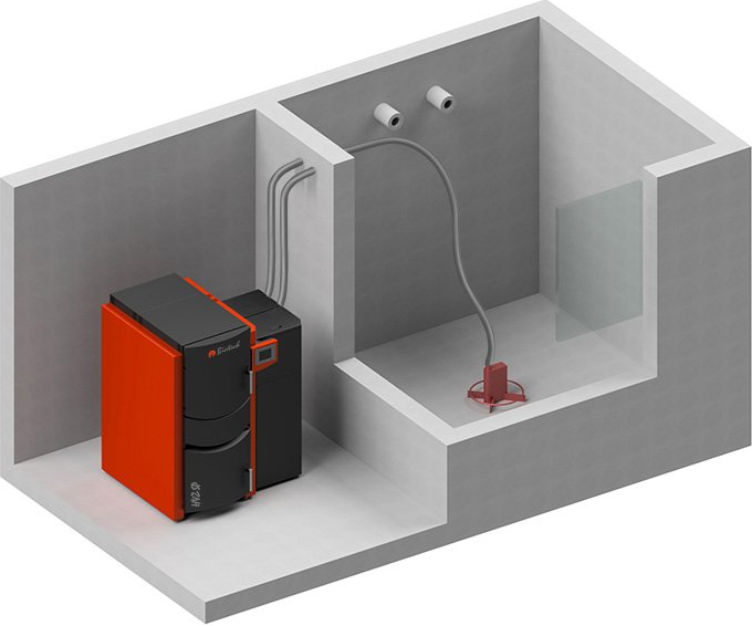 La taupe se décharge automatiquement et est particulièrement douce pour les pellets. Le combustible est transporté dans le réservoir de stockage de la chaudière au moyen d'un transport sous vide.