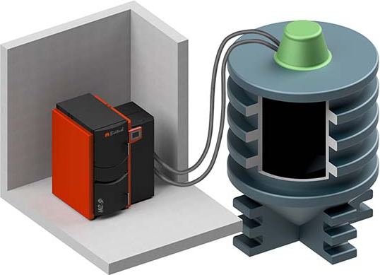 Nessuno spazio per i pellet nel seminterrato: il serbatoio interrato è la soluzione. Negli edifici, uno spazio di stoccaggio in casa può essere interamente risparmiato utilizzando un serbatoio di pellet interrato.