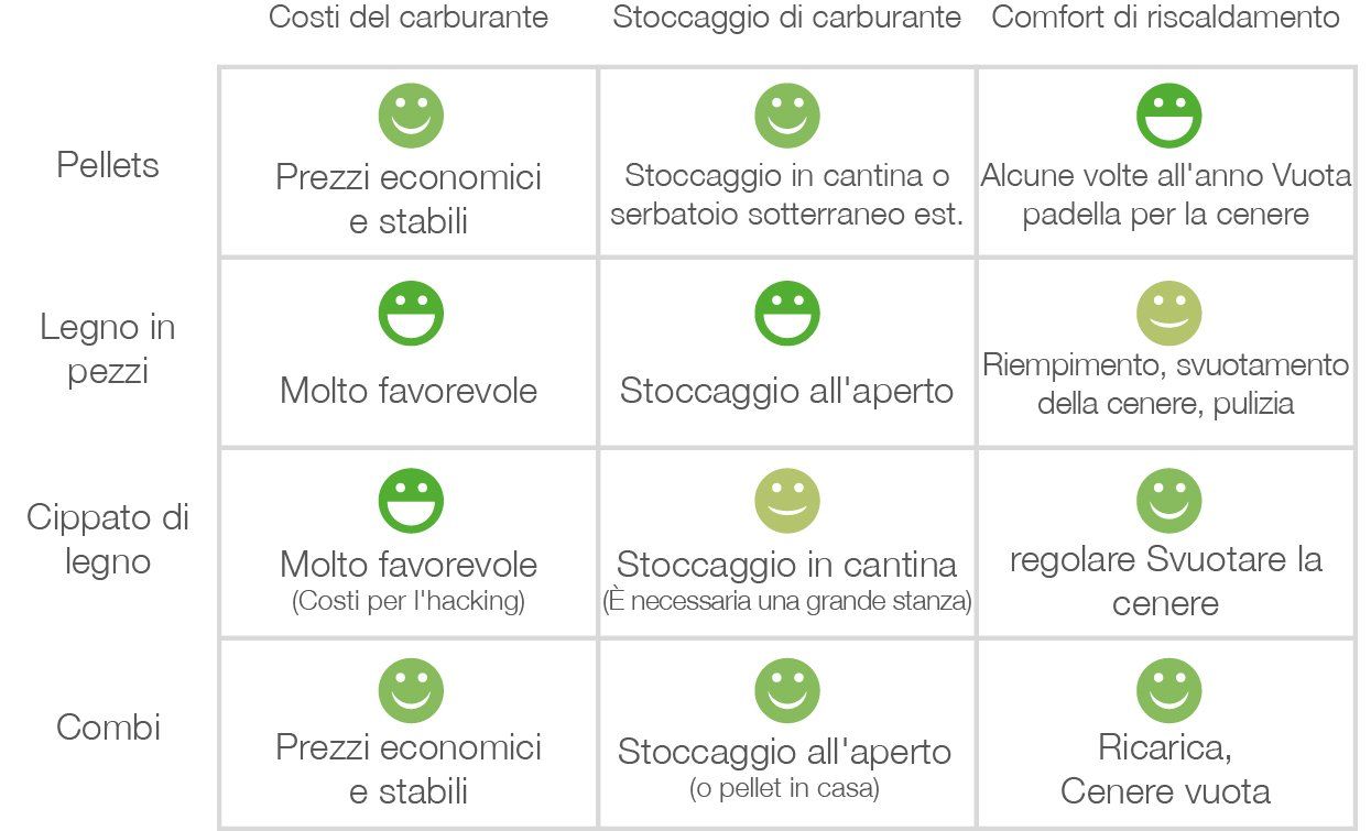 Indipendentemente dal fatto che pellet, trucioli di legno o Pezzo di legno - La biomassa è il carburante del futuro. Basse emissioni e origine regionale caratterizzano il legno come combustibile sostenibile e dal prezzo stabile. A differenza dei combustibili fossili, che stanno diventando sempre più scarsi, il legno rilascia tanta CO² quando viene bruciato quanto un albero assorbe dall'atmosfera durante la sua crescita. La protezione del clima può essere così facile!